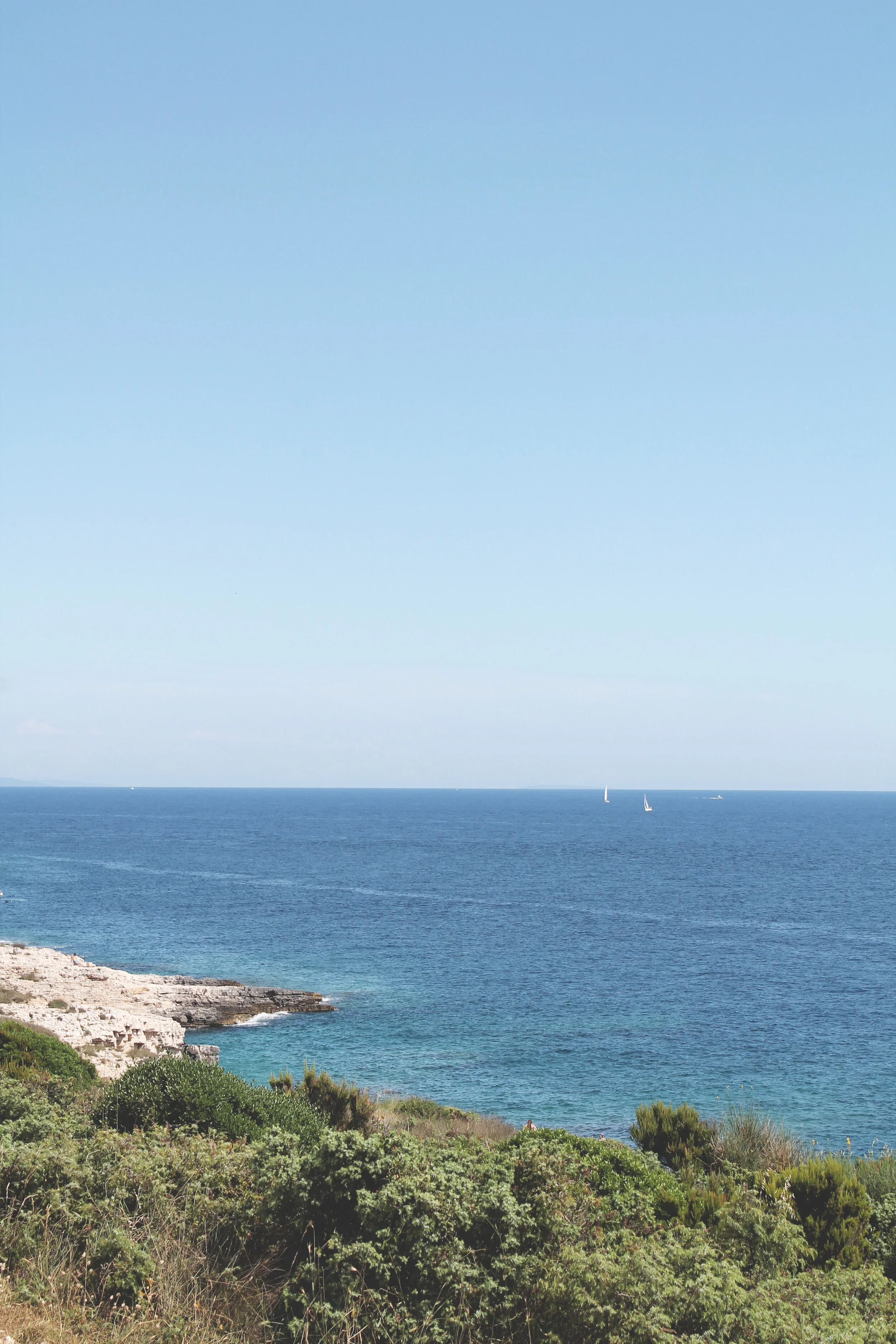 You can smell the sea in the warm air. Mixed with pine trees odour pinching in your nose. You walk on those sun-bleached heated stones, which are everywhere along the shore, avoiding occasional bunches of sharp faded grass gushing out. You put you towel somewhere where the surface is flat enough. The sea is calm and the vividly blue sea is reflecting the sun rays in this dazzling blinding dance. You walk gently on the rocks on your bare foot and once you reach the edge, you dip your toe. The water is fresh and the soft breeze just caressed your bare skin. Its time to jump in.